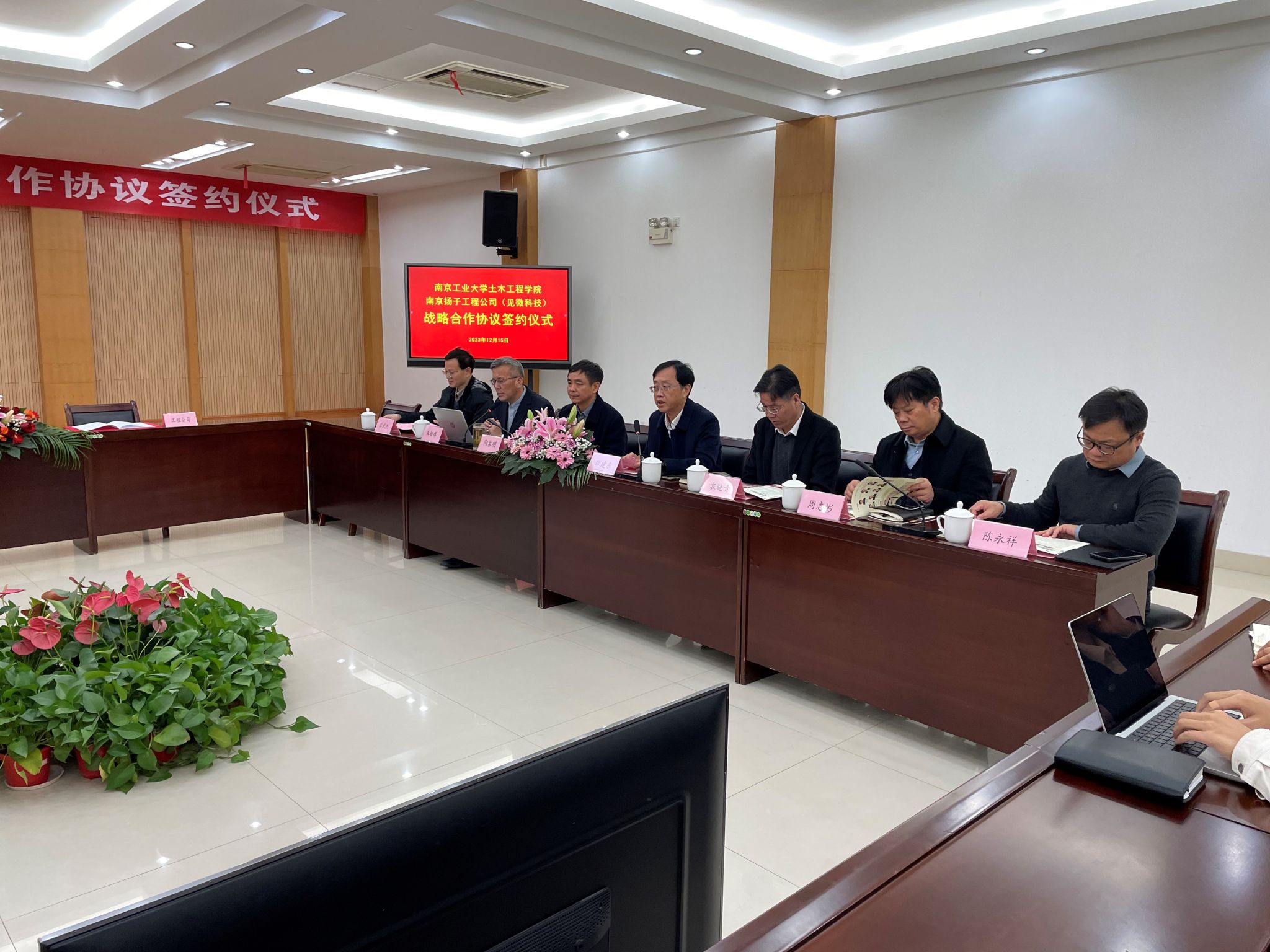 2023年12月15日,南京工业大学土木工程学院与南京扬子石油化工工程有限责任公司举行战略合作协议签约仪式。土木工程学院院长方海、副院长杨会峰、智能建造与管理系党支部书记佘健俊、建筑工程系主任徐金俊、防灾减灾工程系主任蔡忠奎、智能建造与管理系副主任李灵芝及教师代表张磊参加了签约仪式。南京扬子石油化工工程有限责任公司出席签约仪式的领导包括党委书记、董事长张建东,总经理、南京见微智能科技有限责任公司执行董事陶象明,副总经理袁晓青,副总经理朱敏辉,总经理助理周志彬,研发中心主任、南京见微智能科技有限责任公司总经理张武杰,总承包项目部经理陈永祥等。签约仪式在南京扬子石油化工工程有限责任公司辅楼会议室举行,由公司副总经理朱敏辉主持。