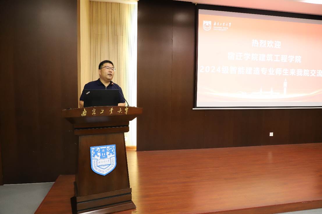 张涛书记致欢迎辞,回顾两校合作渊源,强调智能建造是行业未来方向,呼吁双方携手提升专业建设与实践育人能力,共探江苏特色人才培养新路径。王俊副院长介绍了学院发展、学科特色、科研成果及研究生招生政策和培养成效,诚挚邀请宿迁学子报考南工大。