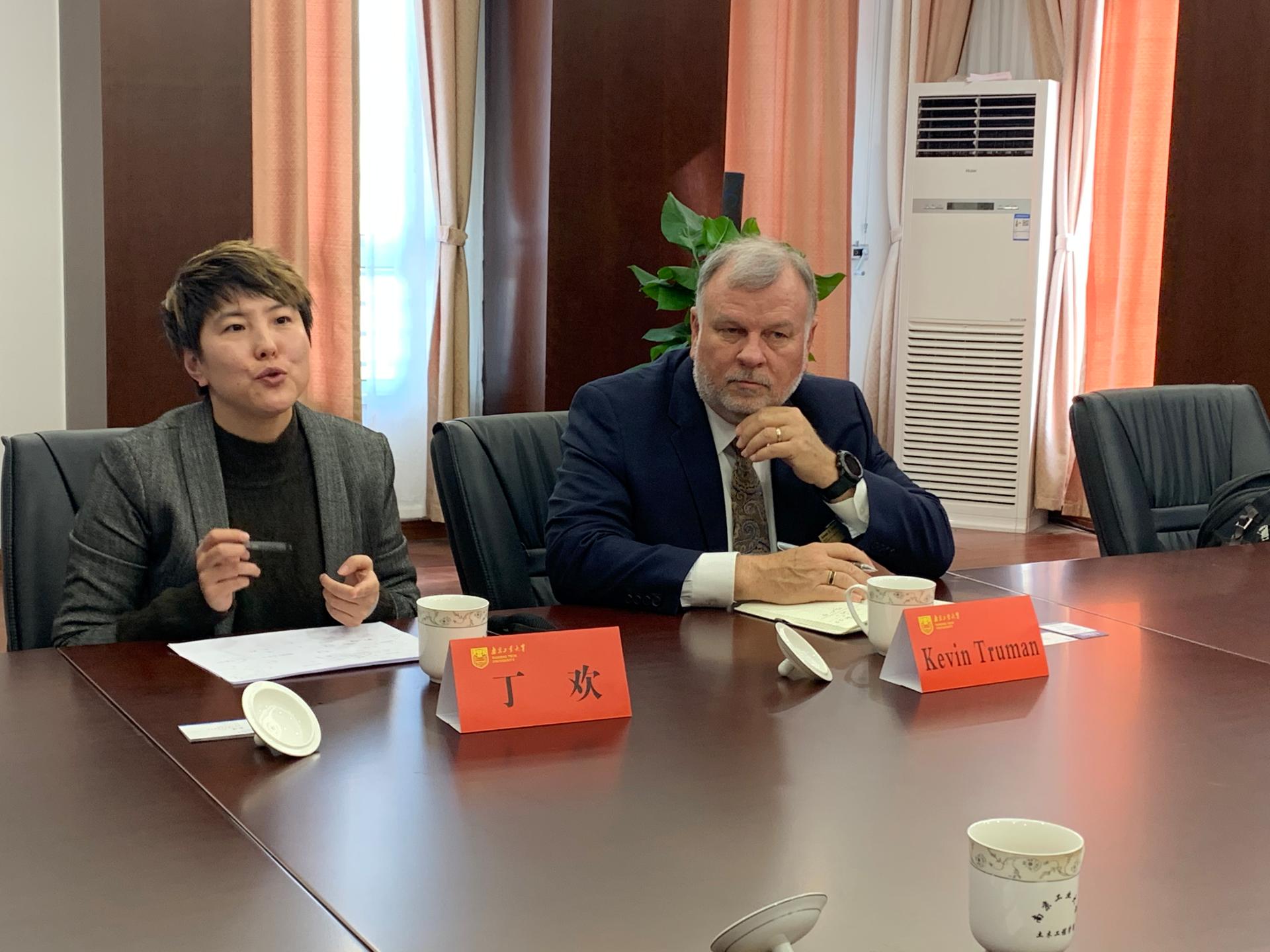 会谈中,欧谨书记、王曙光院长对美国密苏里大学堪萨斯校区代表团的到访表示热烈欢迎,介绍了学院发展、专业设置和科学研究的情况,强调了“南京工业大学-密苏里大学堪萨斯校区土木工程专业3+1+1项目”在两校学生培养、教师交流、科技合作等方面发挥的积极作用,对合作项目中申请条件、学费、培养方式等细节进行了详细讨论,结合当代人工智能、云计算、大数据高新科技的进展,对合作项目的未来发展提出了新的思路。
