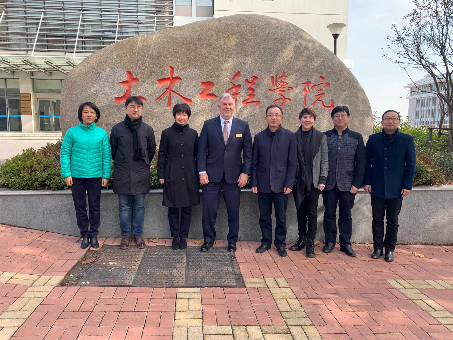 11月29日,美国密苏里大学堪萨斯校区工程与计算机学院院长Kevin Truman和国际事务处主任丁欢访问土木工程学院,我院党委书记欧谨、院长王曙光亲切会见了Kevin Truman院长一行,教学事务部副部长阳辉、副院长王俊、海外事务部海外联络科科长董飞、院长助理岳健广出席会谈。